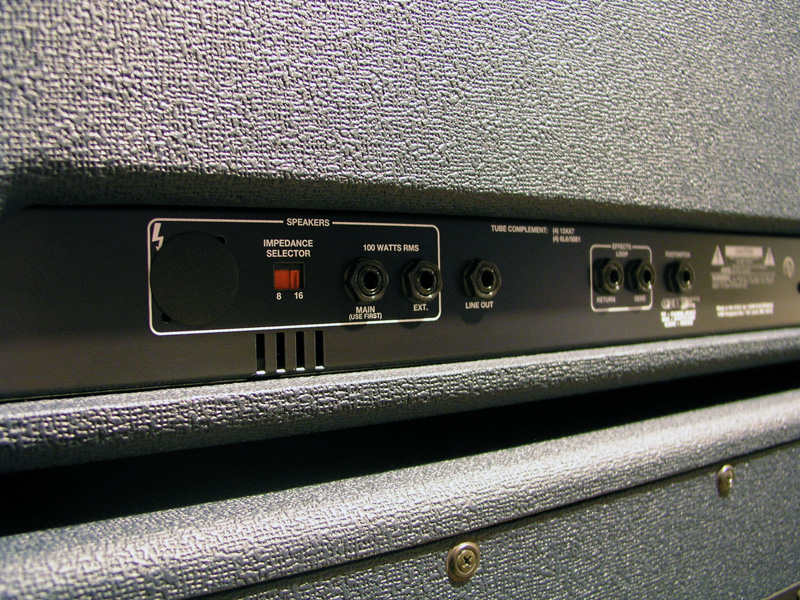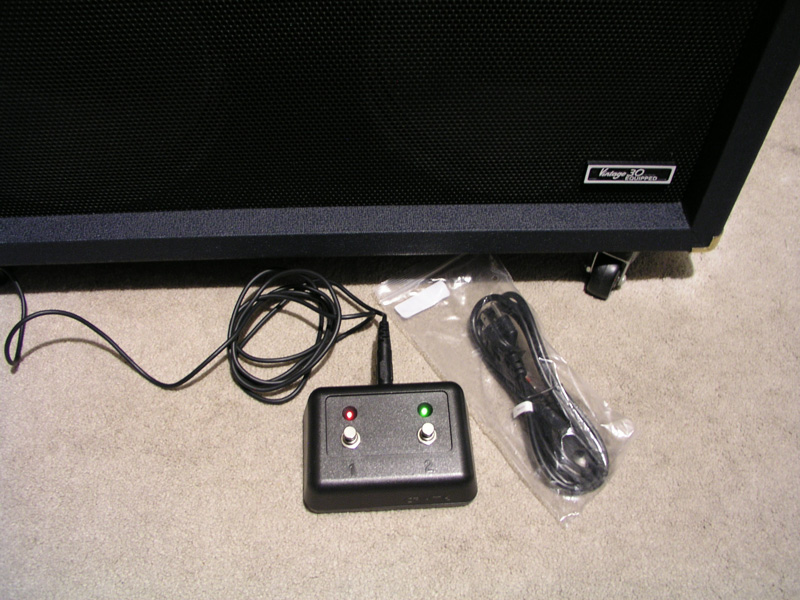 Includes the 2 channel footswitch and footswitch cable, along with a new power cord (still in it's package!). Other features include 2 channels with reverb, a line out and an effects loop. There's also a switch in the back of the head for 8 or 16ohms.